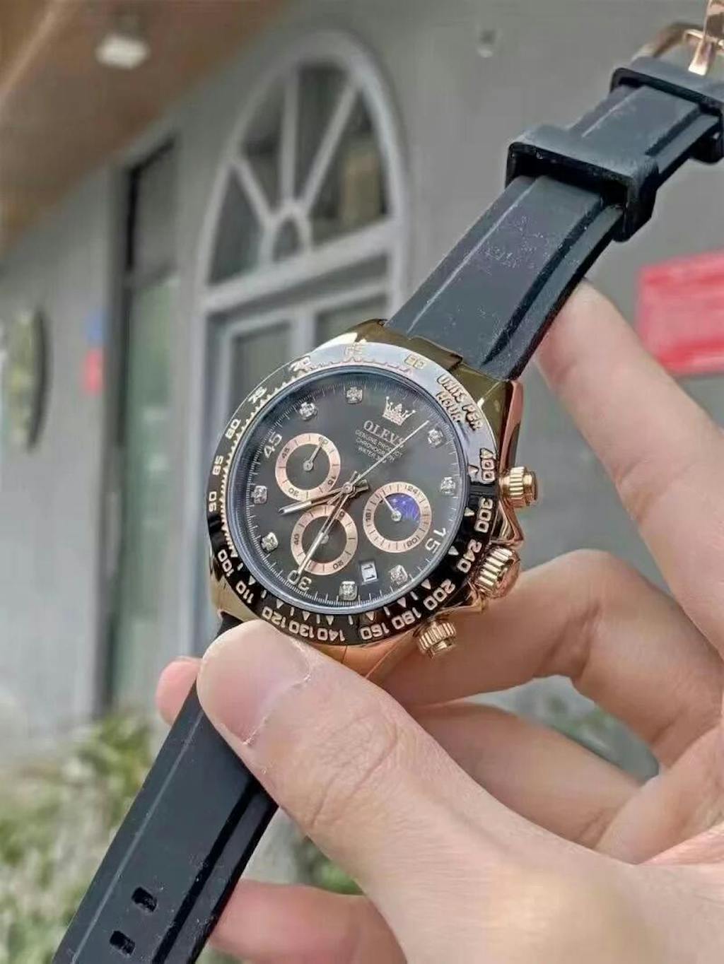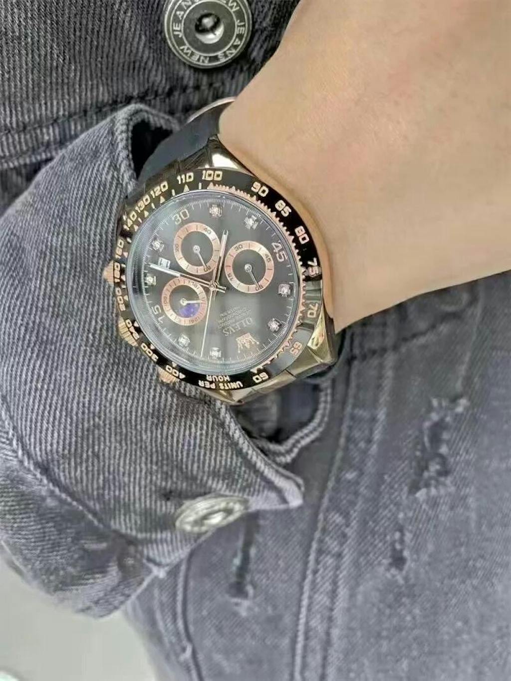 Urtavlan på 41 mm innehåller vita zirkonstenar inuti som ger klockan ett vackert utseende från utsidan. Pekarna är gjorda av fluorescerande material så att du kommer att kunna se tiden även på mörka platser.
