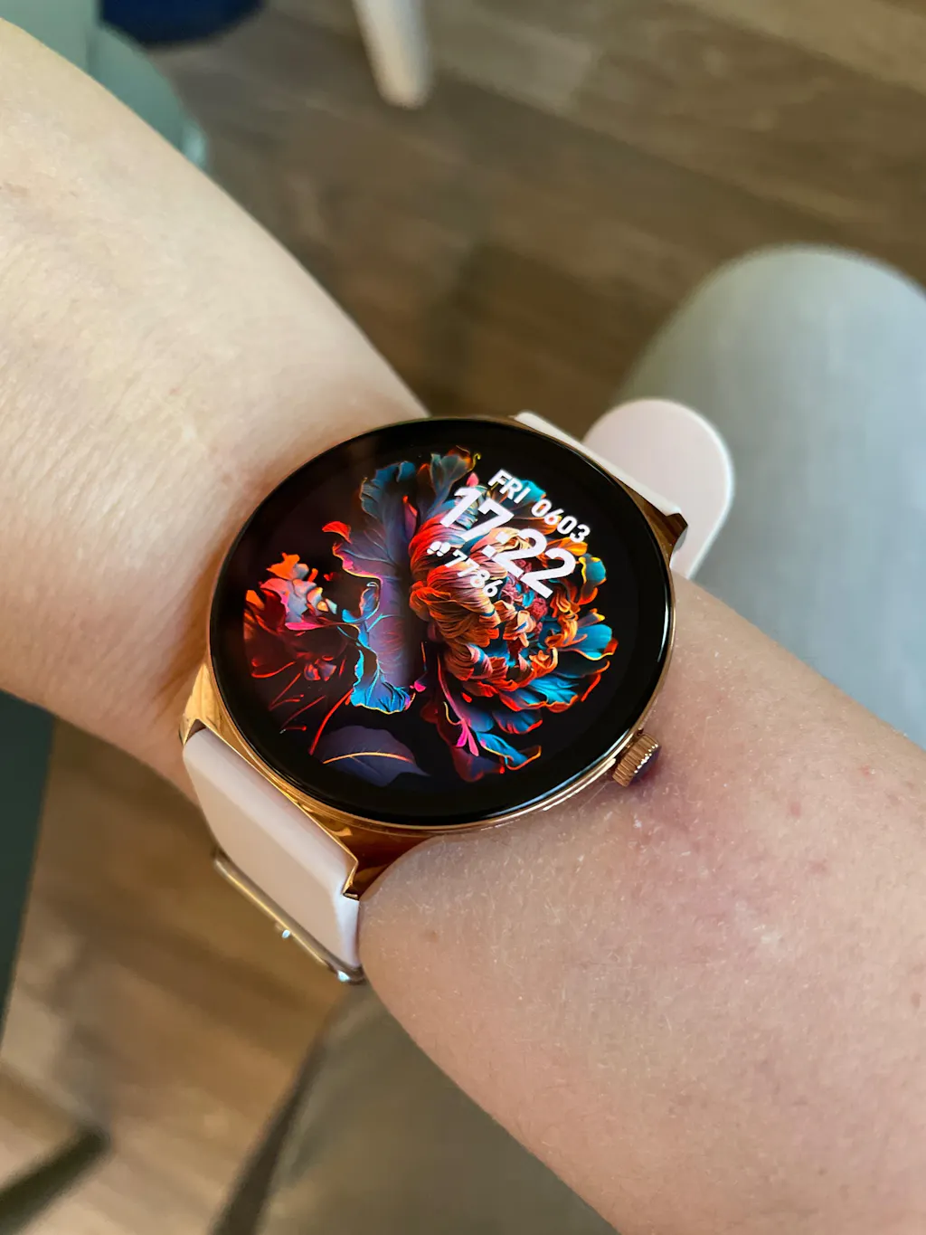 Den här smartklockan är mer än bara en enhet – den är din pålitliga följeslagare för att hålla dig uppkopplad, frisk och stilfull. Förbättra din dagliga rutin med en klocka som elegant balanserar både estetik och funktionalitet.